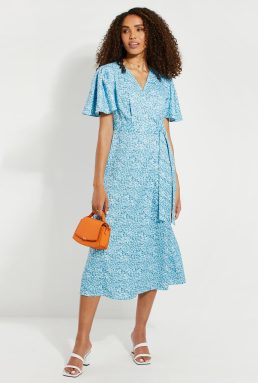 Threadbare Women’s Blue White Floral Satin Wrap Dress