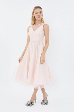 Coast Tulle Frill Midi Dress Blush Pale Pink