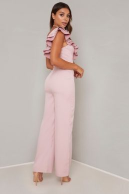 Chi Chi Erica Ruffle One Shoulder Jumpsuit Blush Pale Pink
