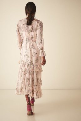 Reiss Amber Floral Printed Midi Dress Pink Cream