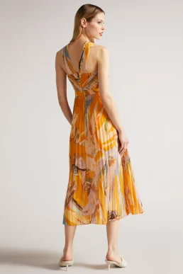 Ted Baker Ansa Cross Front Pleated Midi Dress Orange Multi
