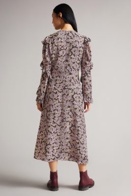 Ted Baker HAAILE Frill sleeve floral dress Pink Multi