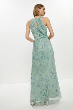 Coast Petite All Over Pleated Floral Maxi Dress Green Multi