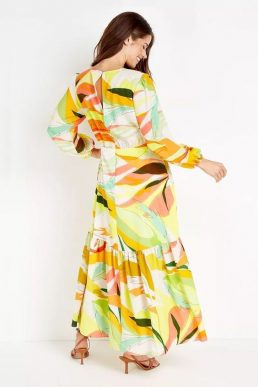 Wallis Lime Abstract Tiered Maxi Dress Yellow Orange Multi