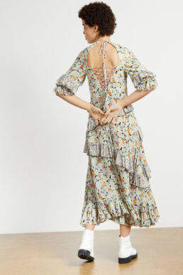 Ted Baker MAYSIIE Puff Sleeve Tiered Midi Dress Green Multi
