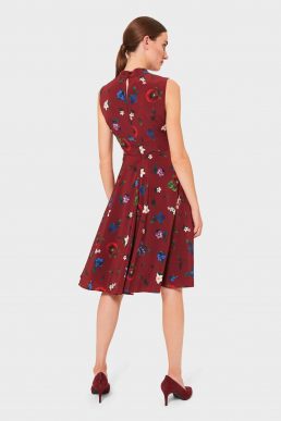 Hobbs Amina Floral Twist Neck Dress Merlot Red Multi