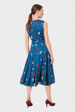 Hobbs Beatrix Satin Floral Fit And Flare Dress Blue Multi