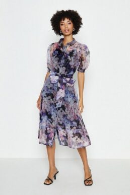 Coast Organza Floral Sleeve Shirt Dress Purple Multi