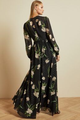 Ted Baker DEENHA Elderflower floral print sleeve maxi dress Black Ivory