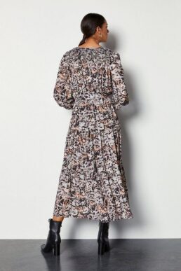 Karen Millen Tiered Midi Dress With Shirring Detail Multi Black