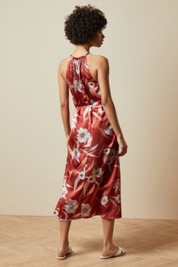 Ted Baker SAYANA Cabana halter neck midi floral dress Dark Brown Multi