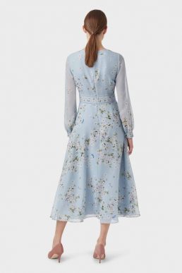 Hobbs Silk Floral Print Sleeve Skye Dress Pale Blue Multi