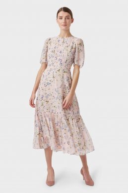 Hobbs Silk Blossom Dress Pale Pink Multi