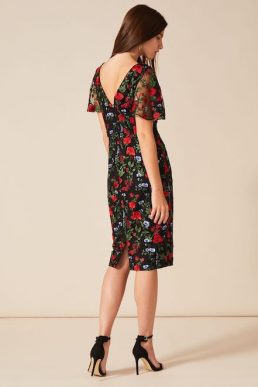 Phase Eight Dorothea Embroidered Dress Black Red Multi
