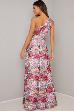 Chi Chi Fae Floral One Shoulder Maxi Dress Pink Multi