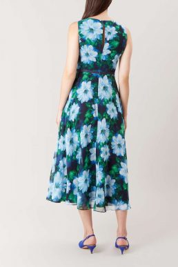 Hobbs Carly Floral Print Dress Blue Green