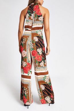 River Island brown printed cross neck jumpsuit, Multi