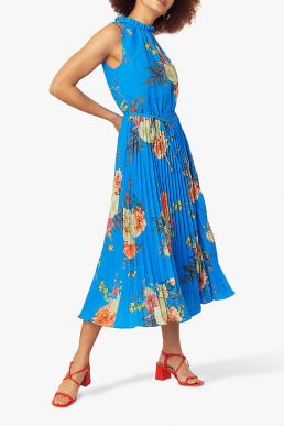 Oasis Botanical Midi Pleat Floral Dress, Blue/Multi