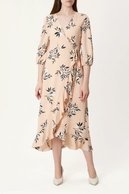 Hobbs Kayla Leaf Print Sleeve Dress Pink Multi
