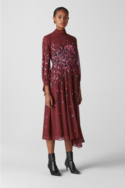 Whistles Leo Print Pleated Dress Burgundy Multi