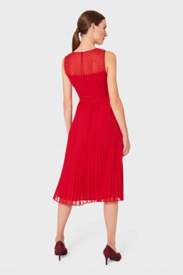 Hobbs Palmer Jacquard Pleated Dress Red