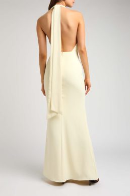 Odd Muse Halterneck twill maxi dress, Creamy Pale Yellow