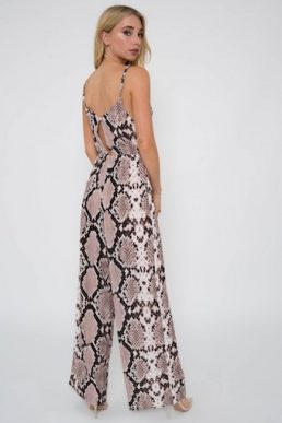 TFNC Kaa Animal Snake Print Jumpsuit Black Nude