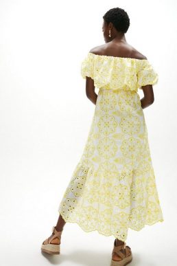 Original price was: £195.00.£117.00Current price is: £117.00.Coast Puff Sleeve Off The Shoulder Midi Dress, Pink/Black/Multi