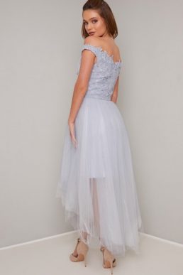 Chi Chi Linnet Lace Tulle Bardot Dress Pale Blue