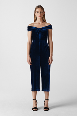 Whistles Velvet Silk Mix Jumpsuit Navy Blue
