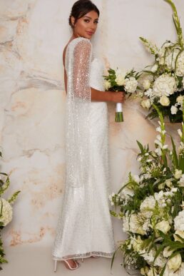 Chi Chi Bridal Vicki Sequin Off The Shoulder Wedding Dress WhiteChi Chi Bridal Vicki Sequin Off The Shoulder Wedding Dress White