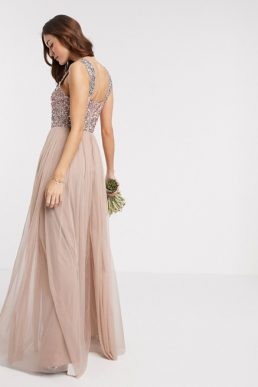 Maya Bridesmaid allover contrast sequin bust maxi dress in taupe blush