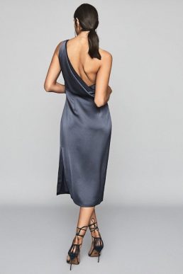 Reiss Eden One Shoulder Satin Dress Navy Blue