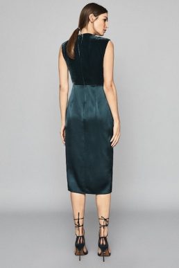 Reiss Livvy Plunge Neckline Midi Dress Teal Blue Green