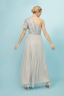 Coast Embellished One Shoulder Maxi Dress, Silver