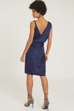 Reiss Zaria Drape Front Cocktail Dress Blue