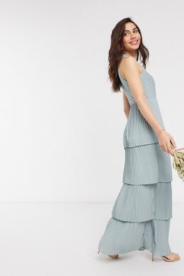 TFNC high neck tiered midaxi bridesmaid dress in sage green