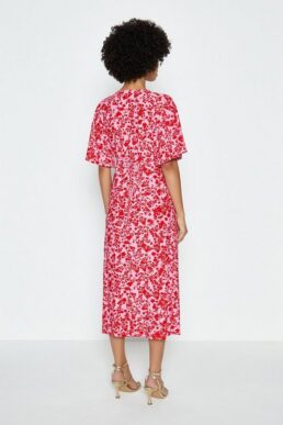 Coast Floral Print Angel Sleeve Midi Dress Pink