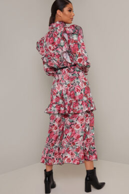 Chi Chi Zandria Floral Print Sleeve Dress Pink Black Multi