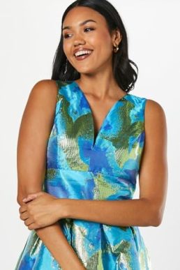 Coast Plunge Neck Jacquard Midi Dress, 8, Blue