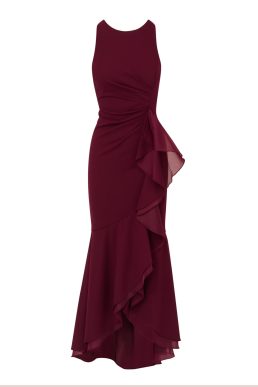 Adrianna Papell Ruffle Crepe Halter Gown Maxi Dress, Cabernet