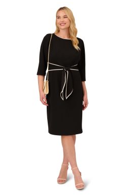 Adrianna Papell Women's Tipped Crepe Tie Dress, Black Ivory, 14
