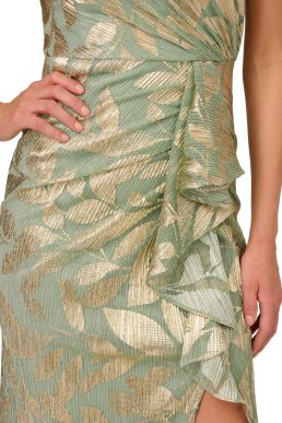 Adrianna Papell Women’s Foil Asymmetric Gown, Sage/Gold