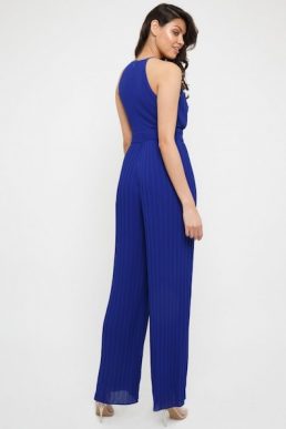 TFNC Sarae Pleat Halter Jumpsuit Blue