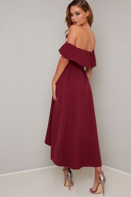Chi Chi Elma Bardot Midi High Low Dress Burgundy