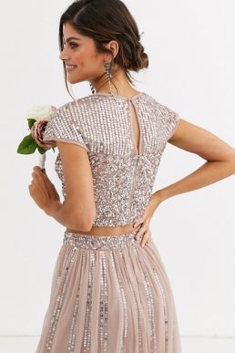 Maya Bridesmaid delicate sequin top co ord in taupe blush