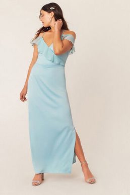 Oasis Ruffle Satin Maxi Bridesmaid Dress Pale Green Mint