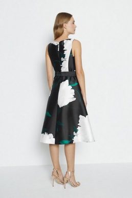 Coast Belted Twill Full Skirted Dress Black White