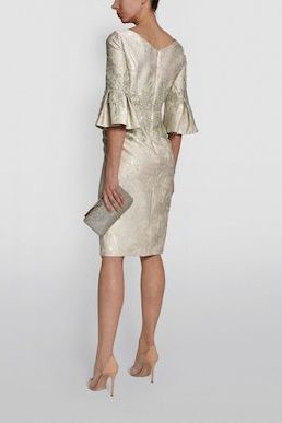 John Charles Brocade Bell Sleeve Midi Dress, Sea Mist/ Light Gold/Champagne