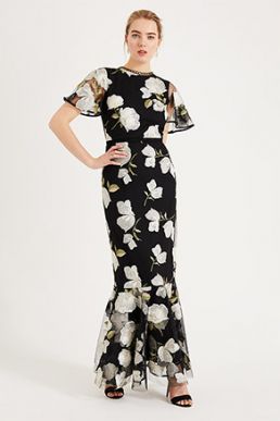 Phase Eight Christine Embroidered Flower Maxi Dress Black White